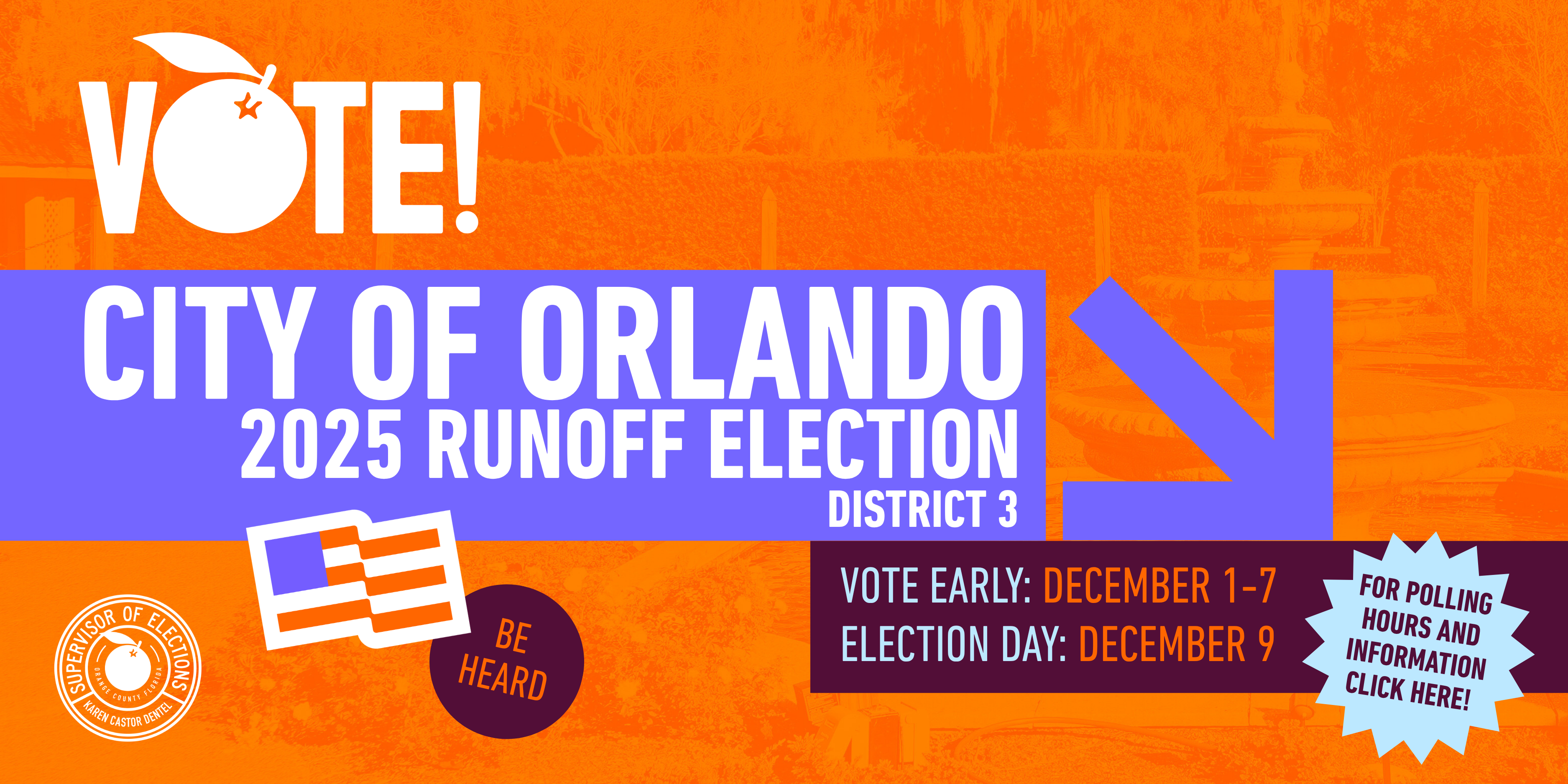 Florida has a very broad public records law. As a result, any written communication created or received by the Orange County Supervisor of Elections Office will be made available to the public and media, upon request, unless otherwise exempt. Under Florida law, F.S. 668.6076, e-mail addresses are public records. If you do not want your e-mail address released in response to a public records request, do not send electronic mail to this office. Instead, contact our office by phone or in writing.